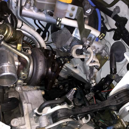 インタークーラーを外してブローバイガスによる吸気系の汚れの有無を確認する.前回よりも比較的きれいな印象であった.