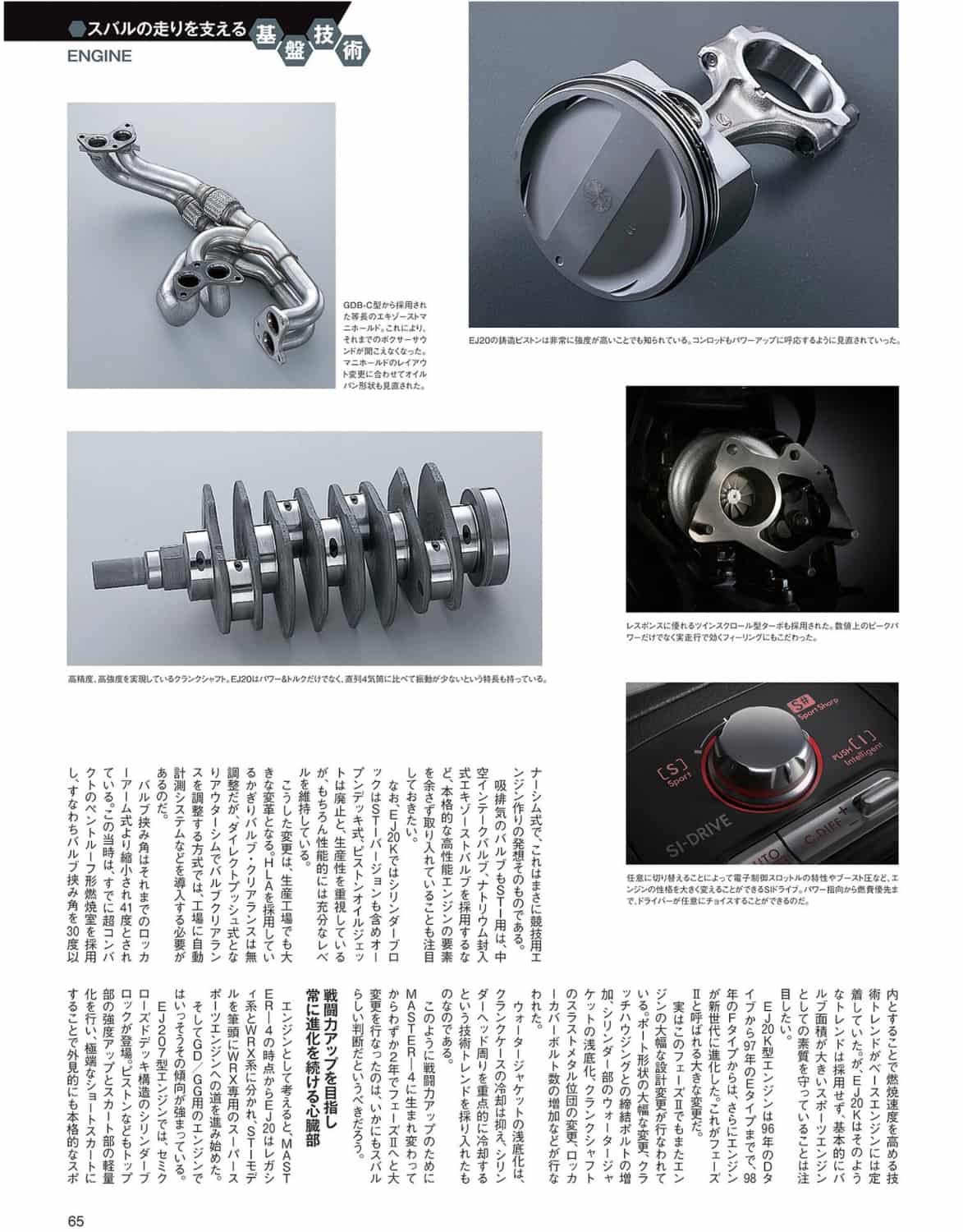 自動車誌MOOK FINALSERIES スバル インプレッサ/WRX という雑誌がEJ20 の歴史やエンジンの改善など、スバルの思いが記されている、私が読んだ中で選ぶベスト1の雑誌である.