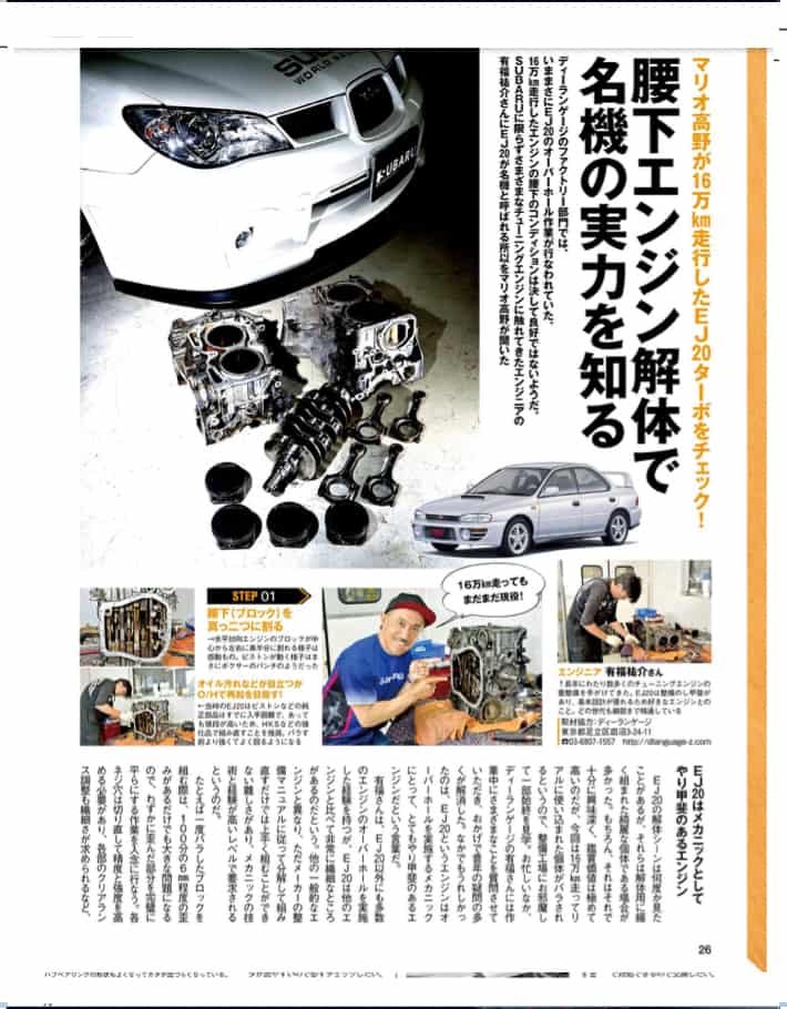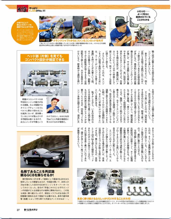 30年という長きに渡りレースや市販車でユーザーに育てら、さらにメーカーの努力によって熟成されてきたEJ20というスバルの水平対向エンジンを雑誌で省みてみました.