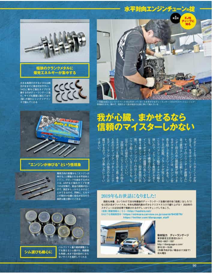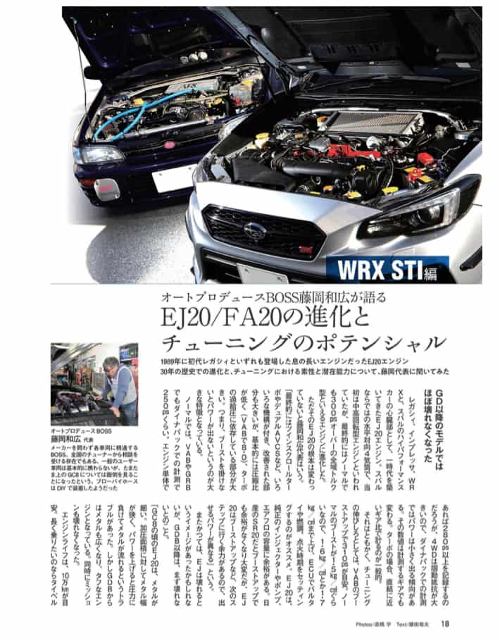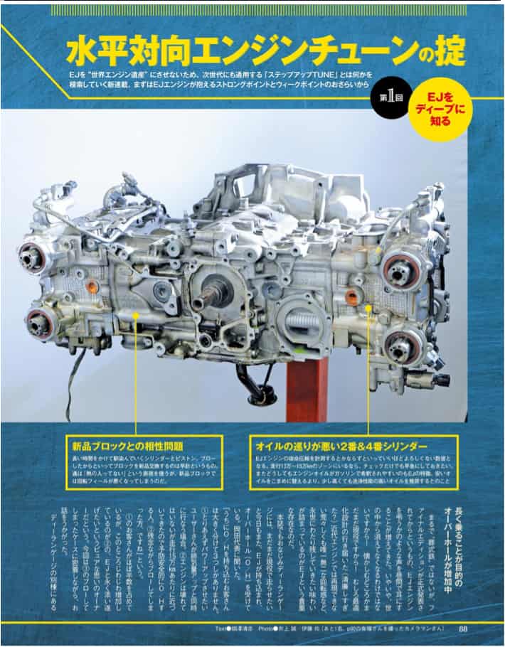 スバルというメーカーが育んできた EJ20 を、さまざまなチューナーが改良し、弱点を克服してきたエンジンでもあります.