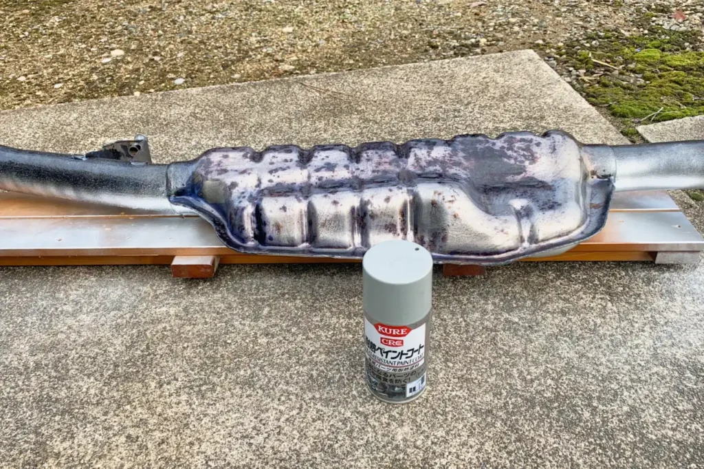 KURE耐熱塗料は、熱が入って固まるようなので、マフラーの取り付けで、ところどころ塗料が剥げてしまいました.