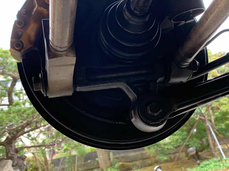 1. 何らかの方法で車体の下に潜り込む ジャッキアップしてウマをかけるなど